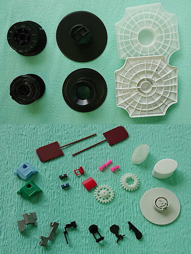 大小さまざまな射出成形機で、市販品の容器類から工業部品など樹脂成形品を製造しています。